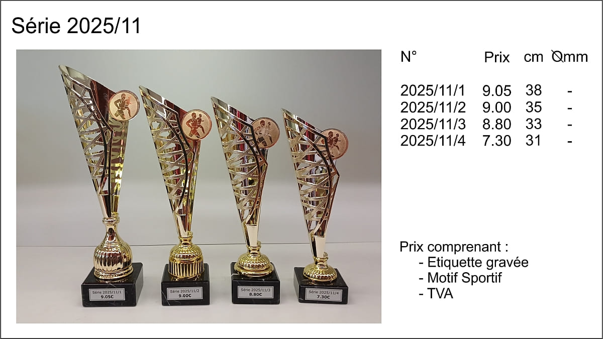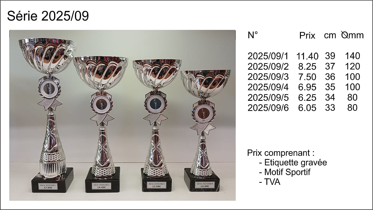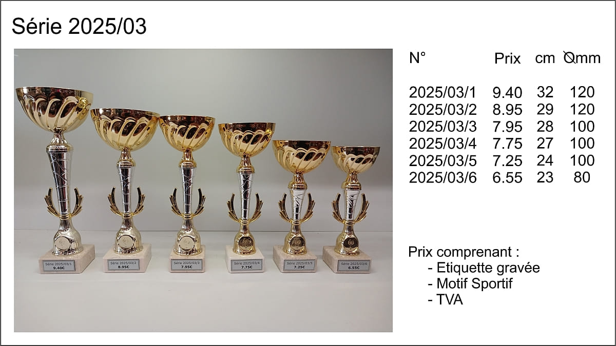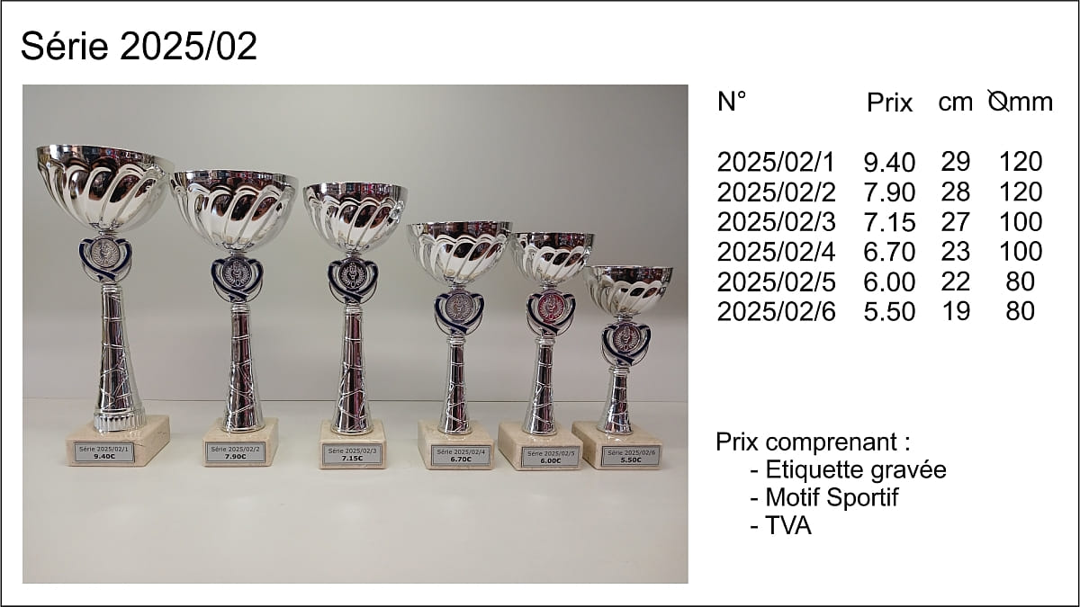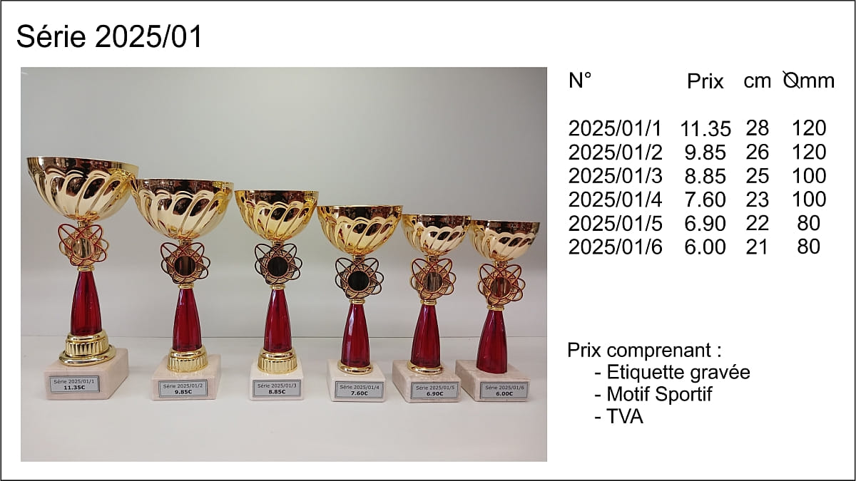 Prix TVA comprise, étiquettes gravées comprises, départ de nos ateliers