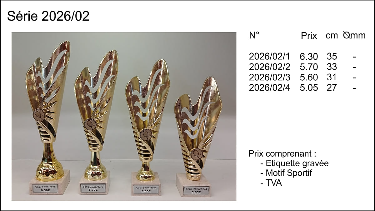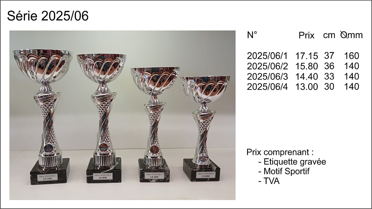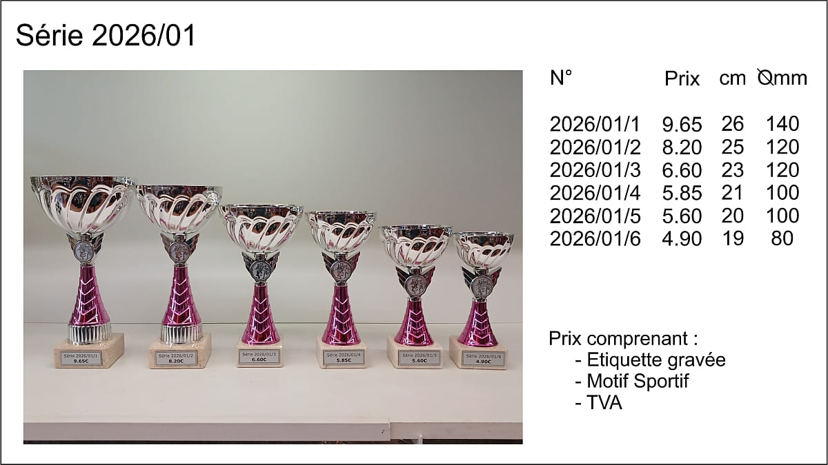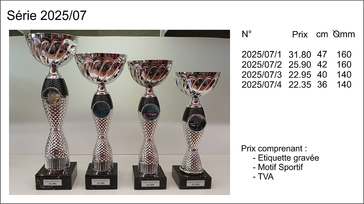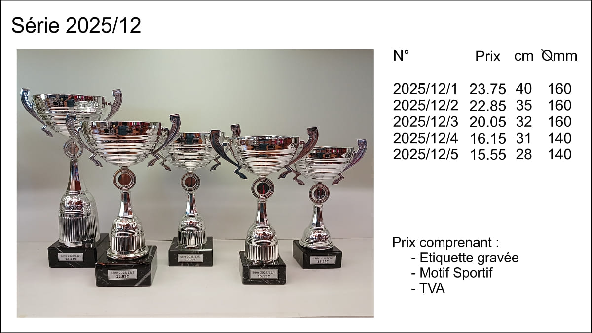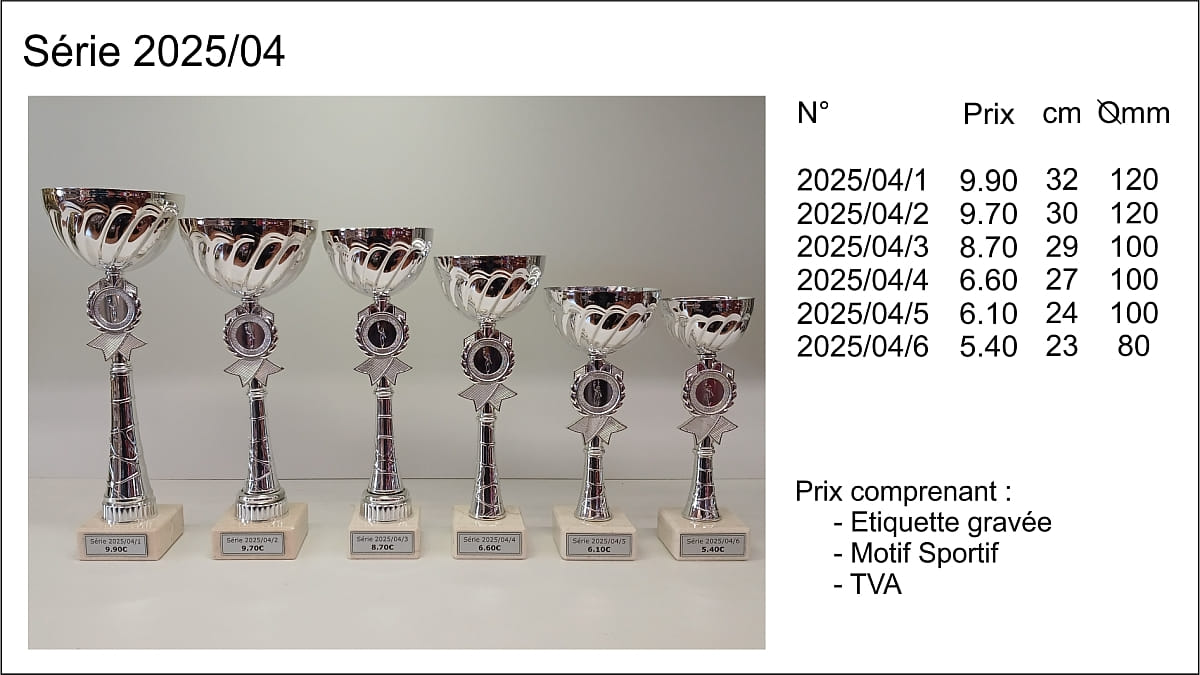 Prix TVA comprise, étiquettes gravées comprises, départ de nos ateliers