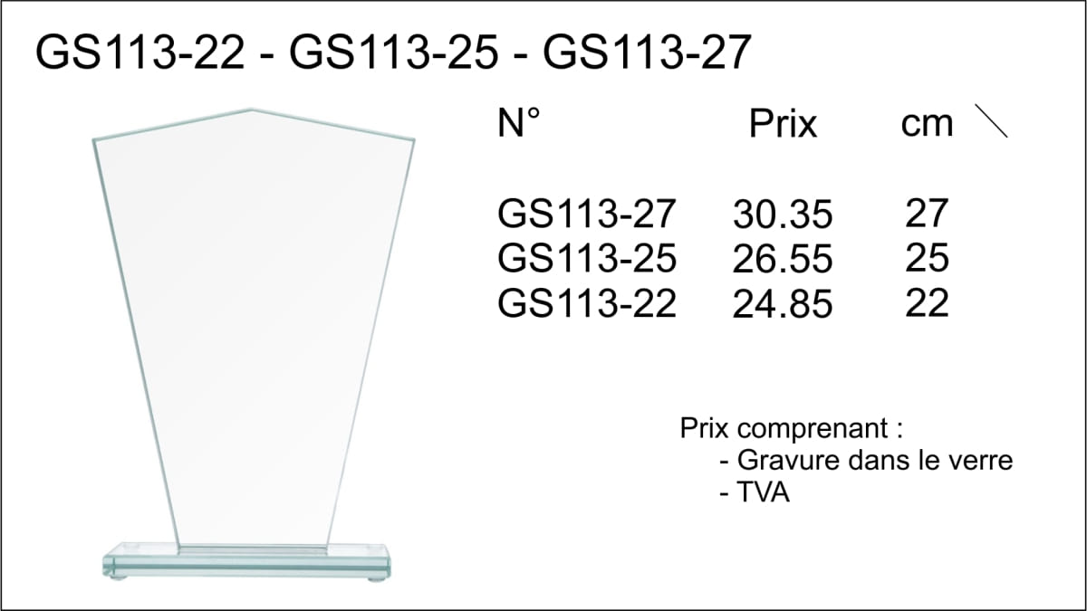 Trophée verre gravé GS113-22 à GS113-27