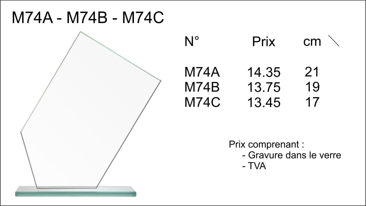 Trophée verre gravé M74A à M74C