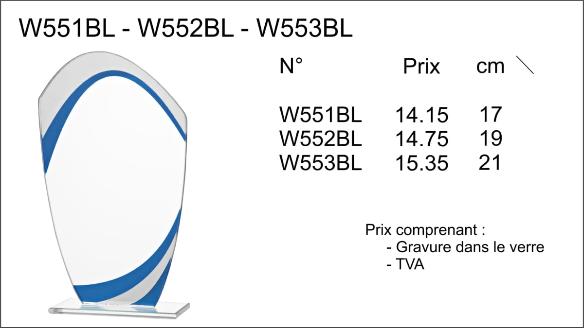 Trophée verre gravé W551BL à W553BL
